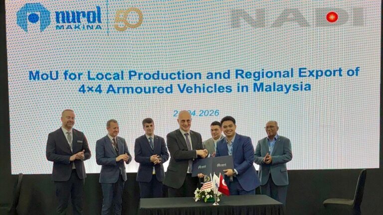 Türkiye’nin önde gelen taktik tekerlekli zırhlı araç üreticilerinden Nurol Makina, Malezya merkezli Nadicorp Holdings Sdn. Bhd. ile yerel üretim, teknoloji transferi ve Asya pazarına ihracatı kapsayan stratejik bir işbirliği anlaşmasına imza attı. Anlaşma, Malezya, Kuala Lumpur’da düzenlenen Defence Services Asia 2026 Fuarı kapsamında hayata geçirildi.